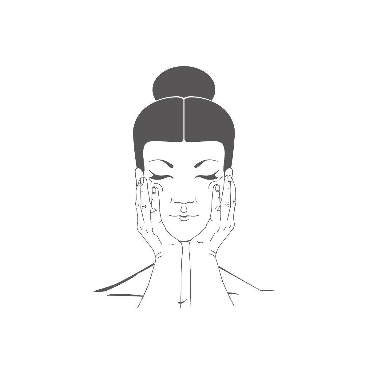 Apply a light, enveloping pressure — as if gently embracing the skin.