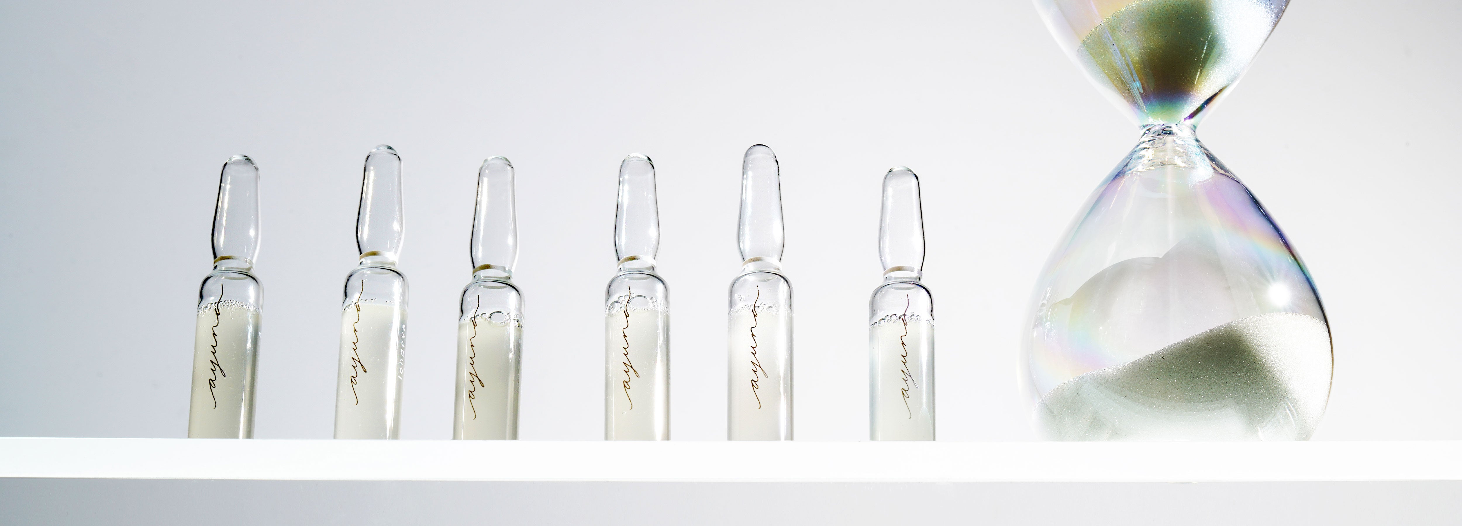 Each ampoule delivers a biomimetic, high-performance concentrate powered by Vitis Fasting Factors — plant molecules obtained from Vitis vinifera cell cultures rich in exosomic resveratrol — blended with botanical cell lysates and biotic ferments that help preserve balance and resilience.
